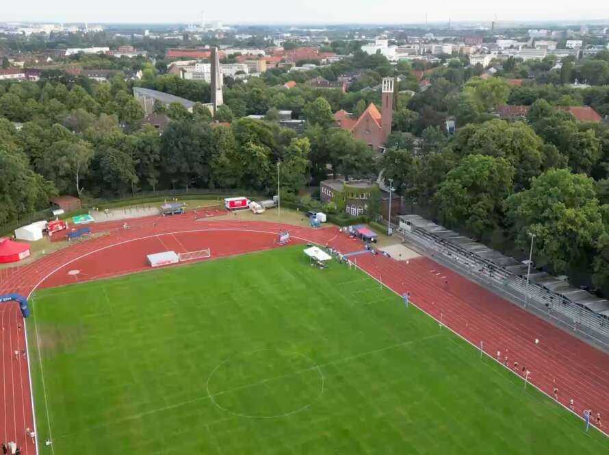 2⅔ Stadionrunden hatten die Halbmarathon-Läufer:innen als Auftakt, bis sie auf die 5km-Pendelstrecke außerhalb des Stadions durch den Hammer Park, entlang der Horner Geest mit der Wende im Thörls Park wechselten. Überwiegend flach, mal asphaltiert, mal Parkwege, einige Kurven… auf jeden Fall abwechslungsreich!